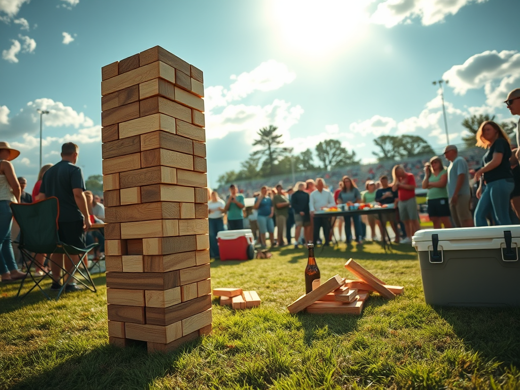 A larger-than-life version of the tabletop favorite. Players take turns pulling wooden blocks from a tower and stacking them higher—until it tumbles! Great for suspense, laughs, and group participation.